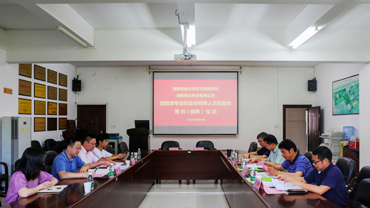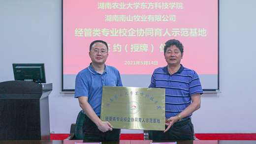 最后,李觅路常务副院长代表学院与湖南南山牧业有限公司签订了校企协同育人合作协议书,举行了授牌仪式。