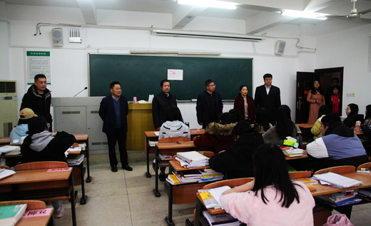 本网讯(培训与对外交流合作中心 范慧玲)12月13日下午,在2022年全国硕士研究生招生考试即将到来之时,学院党委书记史云峰,正处级组织员吴峰,副院长杨海君、蔡鑫萍、党委副书记朱杰辉前往各学部考研自习室走访慰问正在备战的考研学生。