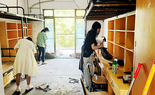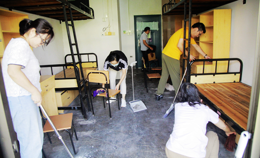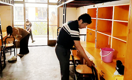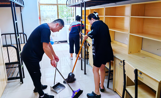 专任教师党员清扫新生寝室