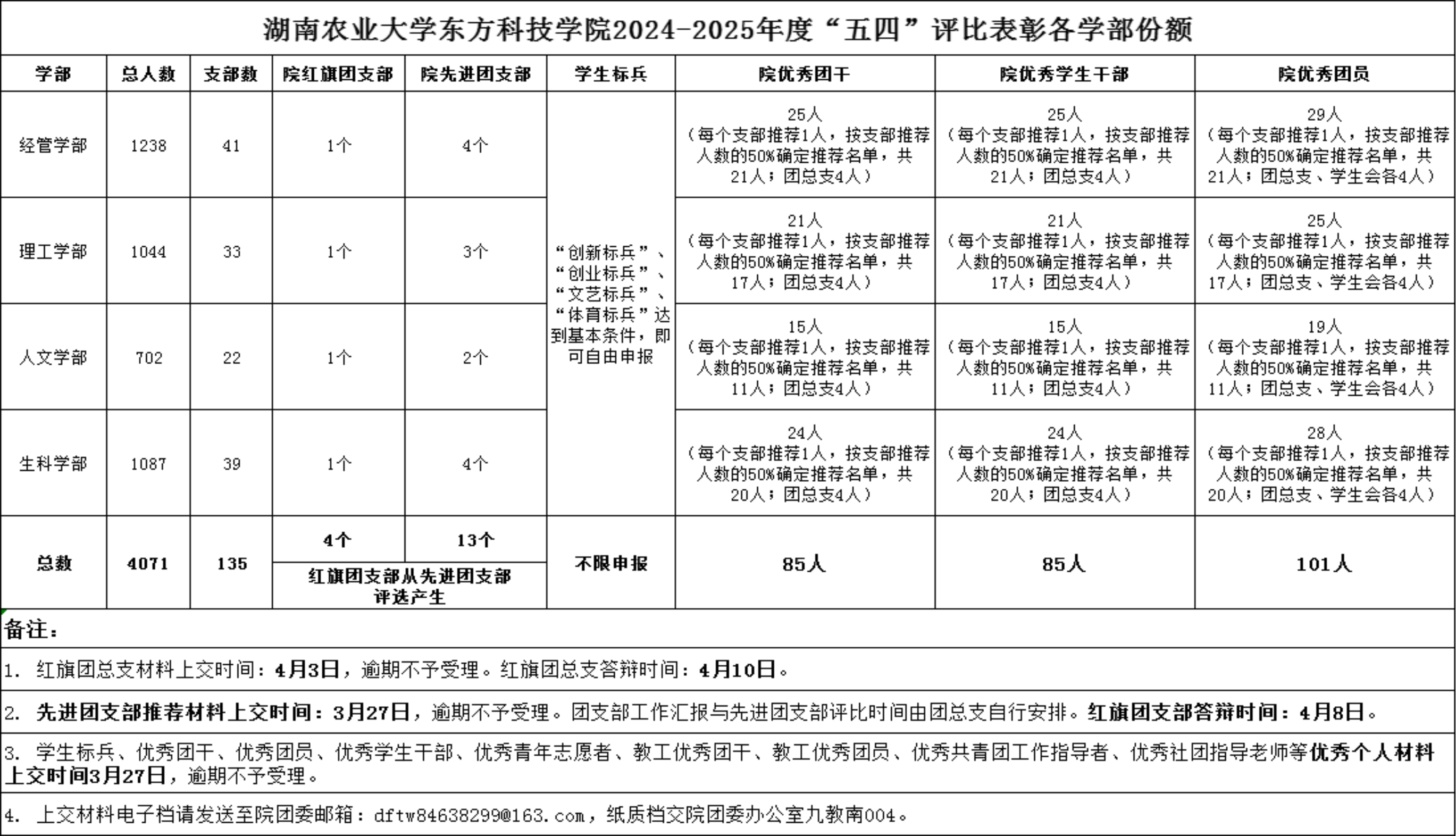 10.湖南农业大学东方科技学院2024-2025学年“五四”评比表彰各学部份额